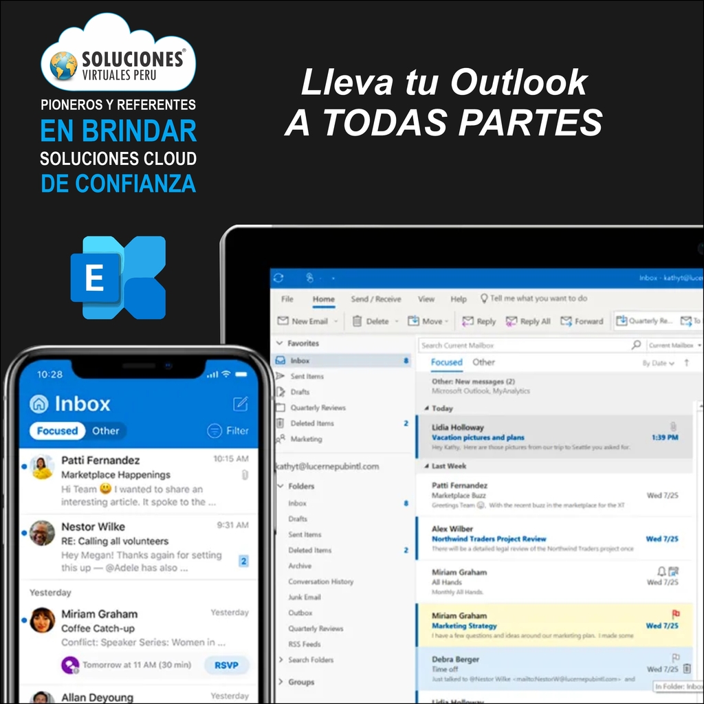 Integración, Escalabilidad, Sincronización, Mensajería, Colaboración, Movilidad, Flexibilidad, Seguridad Avanzada, Plan de Recuperación de Desastres, Buzones de Emergencia
