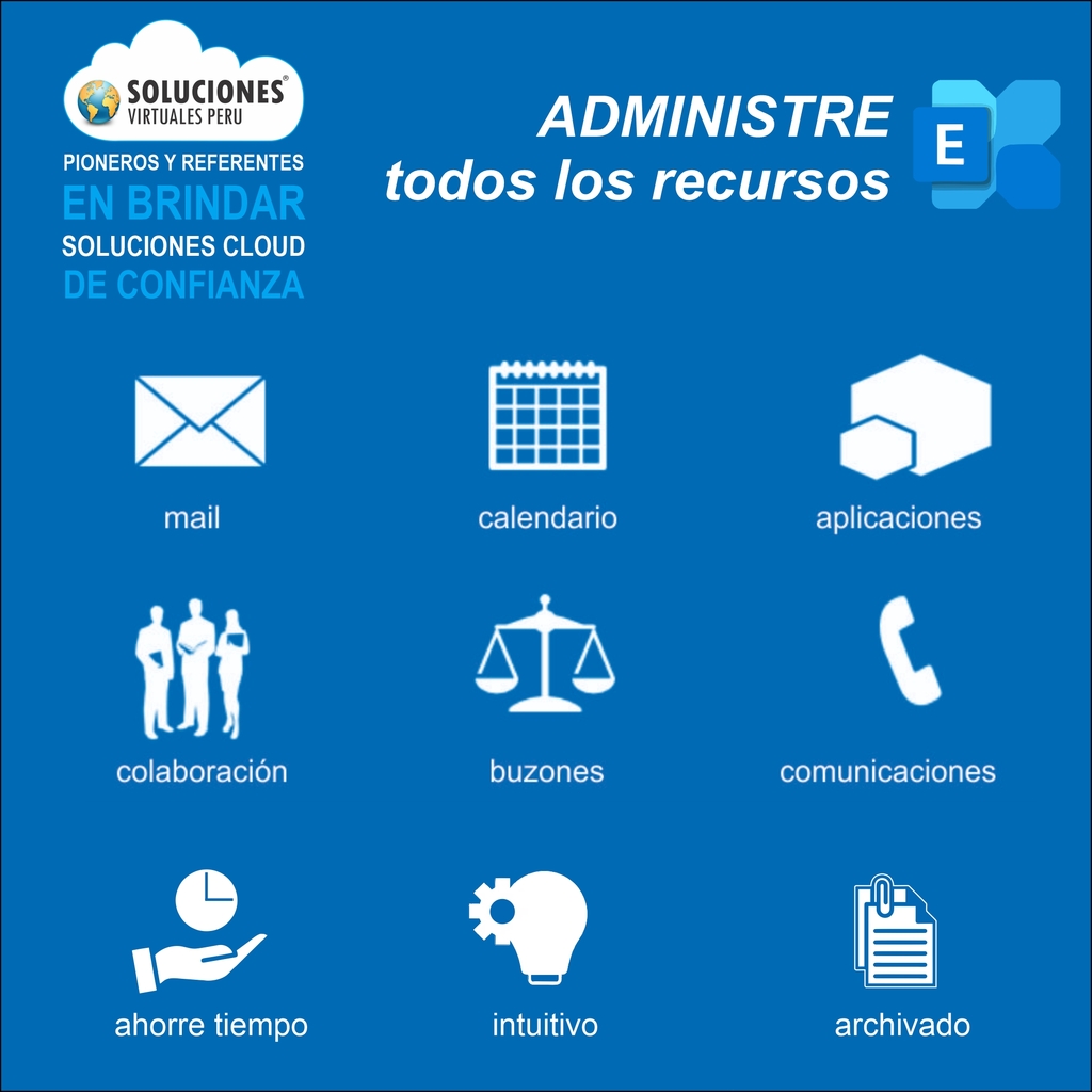 Integración, Escalabilidad, Sincronización, Mensajería, Colaboración, Movilidad, Flexibilidad, Seguridad Avanzada, Plan de Recuperación de Desastres, Buzones de Emergencia